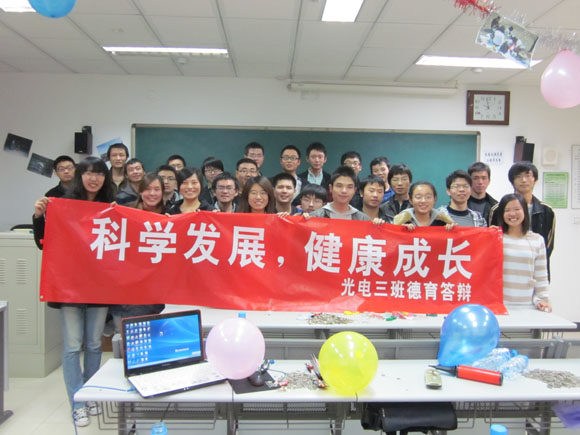 伴随着活动的结束,同学们再一次投身到紧张的学习生活,但是我相信,这样一段小小的插曲,注定要在同学们的心湖上激起阵阵涟漪。我相信,在这次活动之后,光电三班的同学们会更加齐心协力,一起为了更美好的明天,努力!