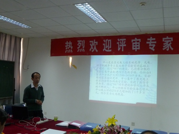 我院光电教学实验中心主任芦汉生教授代表实验中心向专家组进行了汇报,专家组成员针对实验中心人才队伍建设、实验中心与创新基地的有机融合、实验室文化建设等问题提出了很多建设性的意见和建议。专家组还实地考察了实验中心的各个实验室。