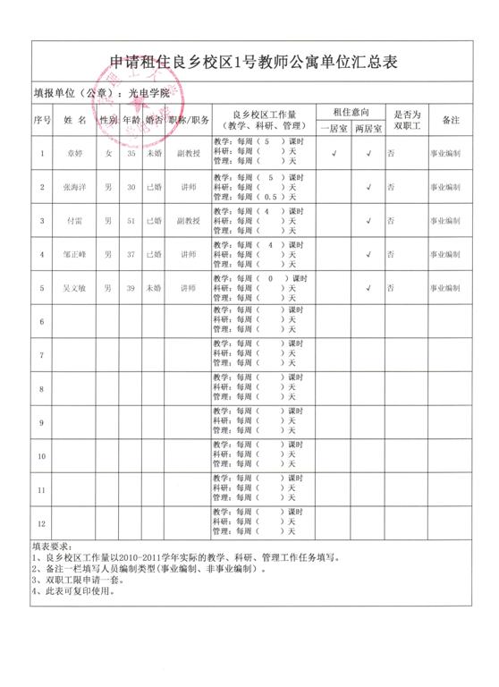 申请租住良乡校区1号教师公寓的排序公示