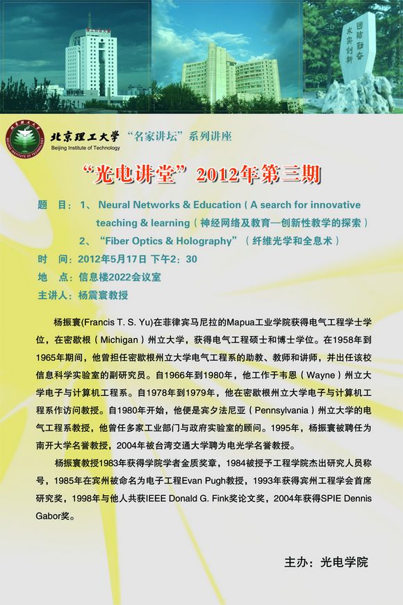 【光电讲堂】金年会jinnianhuicom5月17日学术报告预告