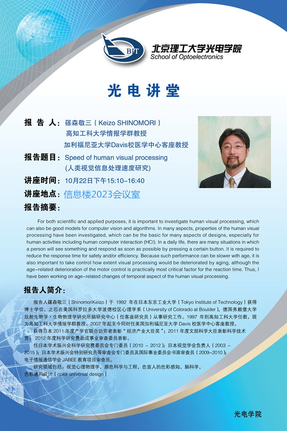【光电讲堂】篠森敬三讲座预告